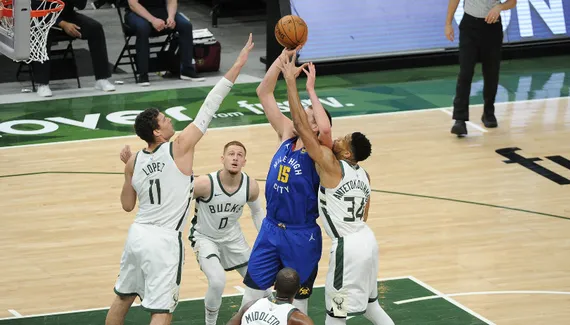 Les Bucks sont à la relance au retour des vestiaires, avec un nouveau dunk de Lopez mais ce dernier n'est pas verni quand il détourne une passe destinée à Jokic… qui retombe dans les mains de Porter Jr. qui décolle au dunk. Antetokounmpo enfourne les dunks à tour de bras mais Milwaukee ne parvient pas à recoller. En fait, les Bucks sont même repoussés à 20 longueurs après un layup de PJ Dozier en contre-attaque, plus la faute de Portis.