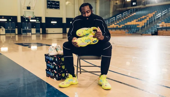 De prime abord, ces modèles semblent une réponse à la collection “Bob l'éponge” de Nike avec la chaussure signature de Kyrie Irving. Mais ces deux versions colorées de la Harden Vol. 5. sont en fait un clin d’œil à sa famille et ses amis ! Les couleurs clinquantes et les formes sont, selon la star des Nets, une manière de rendre hommage à sa maman. La colombe représente ses frères, tandis que la fleur est là en souvenir de son meilleur ami décédé.