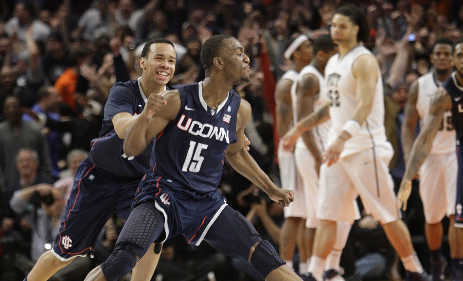 Les deux équipes s’affrontent en quart de finale du tournoi de la “Big East”. Il reste quelques secondes à jouer. Egalité 74 partout et la balle est dans les mains de Kemba Walker, la star des Huskies.