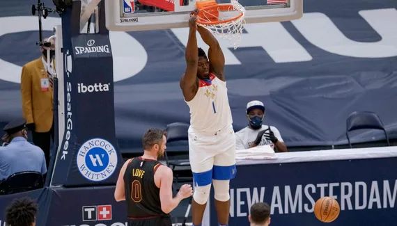 /https%3A%2F%2Fwww.basketusa.com%2Fapp%2Fuploads%2F2021%2F03%2FWIlliamson-1040x572-1.jpg) Les retours de Larry Nance Jr. et de Kevin Love n'auront pas suffi pour les Cavs, quasi-inexistants à New Orleans. Humiliés la veille par Minnesota dans cette même salle, les Pelicans n'ont pas eu à forcer leur talent, sauf peut-être celui de Brandon Ingram en quête de rachat après son 5/14 de la veille, pour l'emporter par 34 points d'écart.