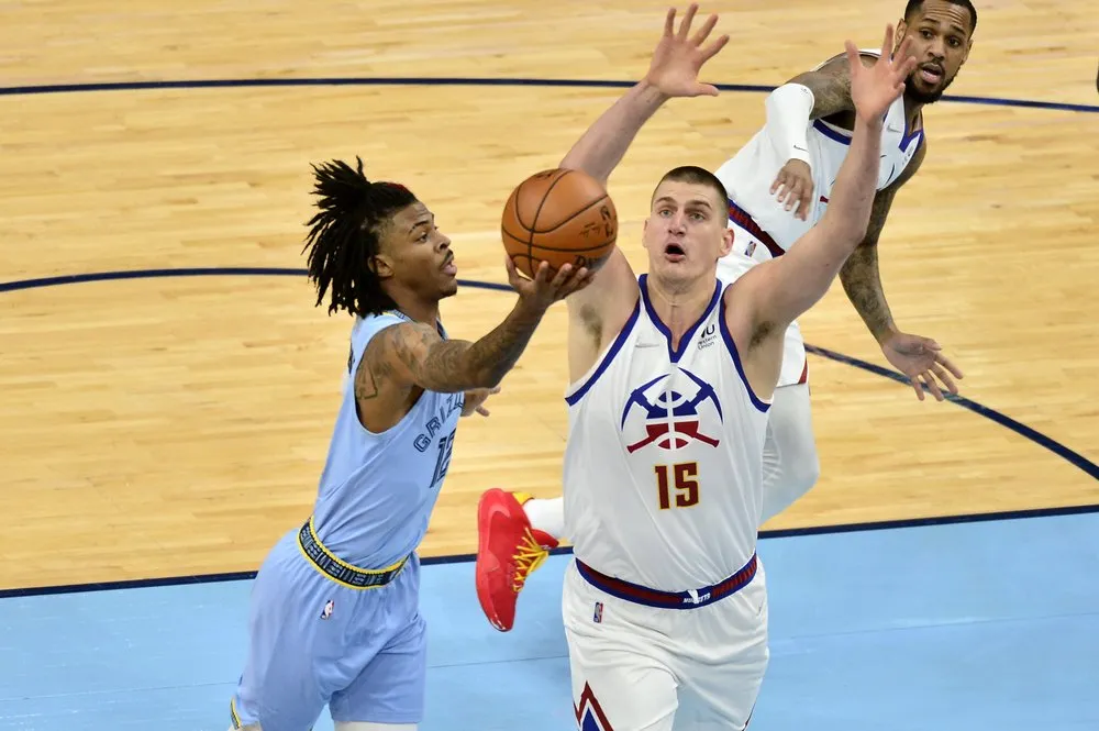 Il reste six secondes à jouer quand Ja Morant récupère le ballon, sur la remise en jeu des Grizzlies, face à Denver. Le meneur de jeu et ses coéquipiers sont menés 102-103. Le rookie de l'année 2020 attaque le cercle et y rencontre Nikola Jokic.