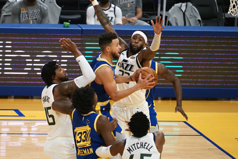 Comme en première mi-temps, Utah passe à l’attaque face au deuxième cinq de Golden State. Rudy Gobert continue sa domination des deux côtés alors que sept points de Jordan Clarkson ramène le Jazz à -1, mais la sortie du Français permet une nouvelle fois aux Warriors de reprendre un peu d’air (110-104). Donovan Mitchell monte alors en pression mais Jordan Poole, Eric Paschall et Stephen Curry répondent à chacun de ses paniers pour garder le Jazz à -10 avec trois minutes au chrono (121-111).