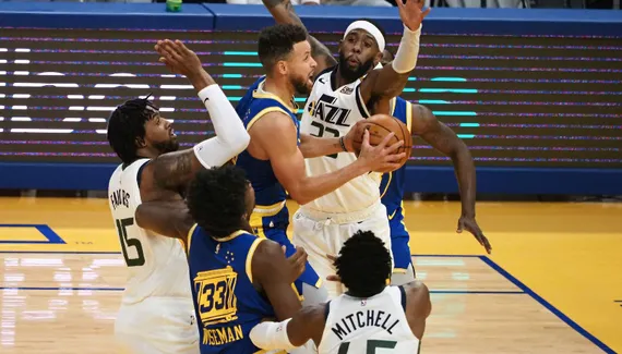 Malgré le record de rebonds de Rudy Gobert sur un match, c'est un 3-points d'Andrew Wiggins sur une passe de Stephen Curry qui vient tuer le match, et offrir une bien belle victoire à des Warriors qui en avaient besoin après une série de quatre défaites de suite. Le Jazz quant à lui a perdu 5 de ses 10 derniers matchs, et a été abandonné par sa défense ce soir, en particulier en transition et dans les minutes jouées sans Rudy Gobert.