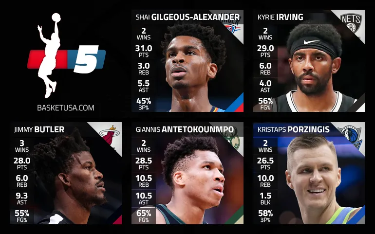 À ses côtés, Zion Williamson n'était pas un mauvais choix mais Giannis Antetokounmpo a repris du bon pied, face aux Knicks et aux Wizards. Sous le cercle, c'est Kristaps Porzingis qui complète finalement ce cinq de reprise, le Letton ayant retrouvé son adresse de loin, pour permettre à Dallas de poursuivre son ascension.