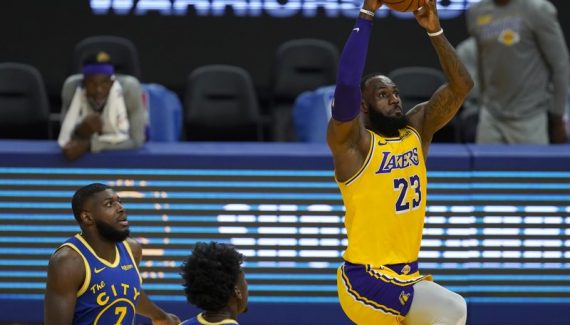 Malgré l’adresse de Stephen Curry et le réveil d’Andrew Wiggins, la défense des Lakers continue de limiter le jeu de passes de Golden State. L’écart ne descend pas sous les dix unités. Au contraire, LeBron James passe à la vitesse supérieure et appuie là où ça fait mal, il dissèque la défense locale, enchaine les passes décisives et derrière une adresse toujours aussi insolente, l’écart atteint les vingt unités (93-73).