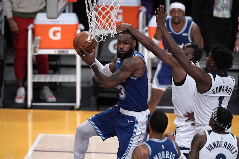 Sa montée en puissance, soutenue par un trio Talen Horton-Tucker – Kyle Kuzma – Dennis Schroder (tous à 16 points), permet à Los Angeles de prendre légèrement ses distances à l’entame de la dernière période (102-94). Car l’écart va enfler dans les minutes qui suivent avec un James qui se joue des Wolves sur le « pick-and-roll », plein axe, avec Montrezl Harrell.