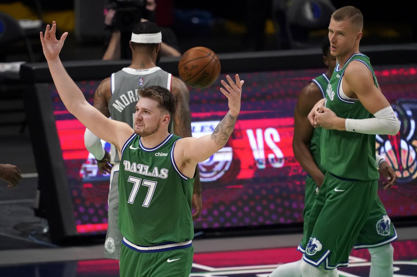 Muet depuis le premier quart temps, Kristaps Porzingis retrouve enfin le chemin du cercle. Le Letton offre une bonne séquence offensive dans un moment où son équipe rencontrait quelques difficultés à rester dans le rythme sans Luka Doncic. De plus, KP s’active en défense en contrant à deux reprises Kawhi Leonard.