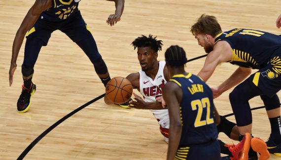 Miami joue dans un autre registre en s’appuyant principalement sur les finitions près du cercle de Jimmy Butler. C’est insuffisant pour éviter d’être mené à la pause (49-57), après que Miami n’a converti que 3 paniers primés sur 18 tentatives… À l’instar d’un Tyler Herro, actif partout dans le jeu, mais en galère avec son tir tout au long de la soirée. Et même lorsqu’il veut se rapprocher du cercle, en contre-attaque ou jeu placé, Myles Turner le repousse à deux reprises sur la même action.