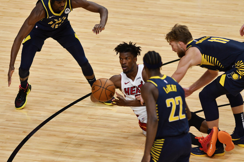 Si Domantas Sabonis, malgré des « switchs » favorables obtenus face à Jimmy Butler, n’est pas le plus heureux à la finition, il reste un point de fixation essentiel dans l’attaque des Pacers. Mais le distributeur en chef n’est autre que Malcolm Brogdon qui ouvre de nombreux tirs à ses coéquipiers grâce à ses pénétrations.
