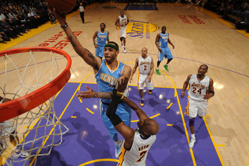 Toujours très bien défendu par Wilson Chandler, plus grand que lui, Kobe Bryant n’arrivait pas à ramener les siens à hauteur, forçant pas mal de tirs. Pau Gasol perdait lui deux ballons essentiels et les Lakers, à court d’imagination, revenaient tant bien que mal dans le match en toute fin de rencontre, à la faveur d’un tir à 3 points de Lamar Odom.