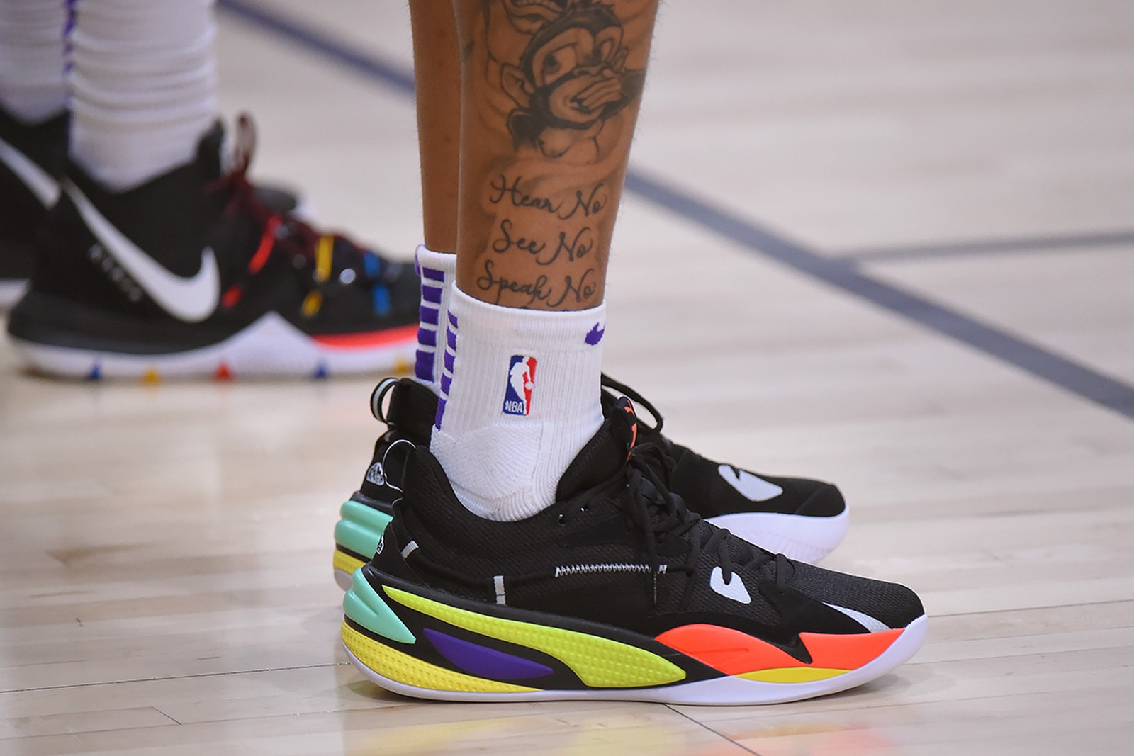 Familier de la marque, qu’il a porté depuis sa jeunesse lorsqu’il jouait au foot, Chris Boucher portait ces derniers temps la PUMA RS-Dreamer-J. Cole, déjà vu aux pieds de Kyle Kuzma.