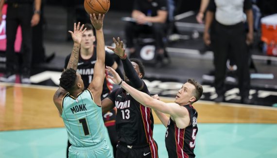 « Je ne sais pas ce qu’il mange ou à quoi il pense les jours de match contre Miami, mais il faut qu’il continue à faire ça ! ». James Borrego a encore été époustouflé par la façon dont Malik Monk est sorti du lot cette nuit dans la victoire de Charlotte face à Miami (110-105). Le sniper a tout écrasé sur son passage, convertissant ses sept premières tentatives pour offrir 25 points d’avance à son équipe après seulement deux minutes dans le deuxième quart-temps (51-26).