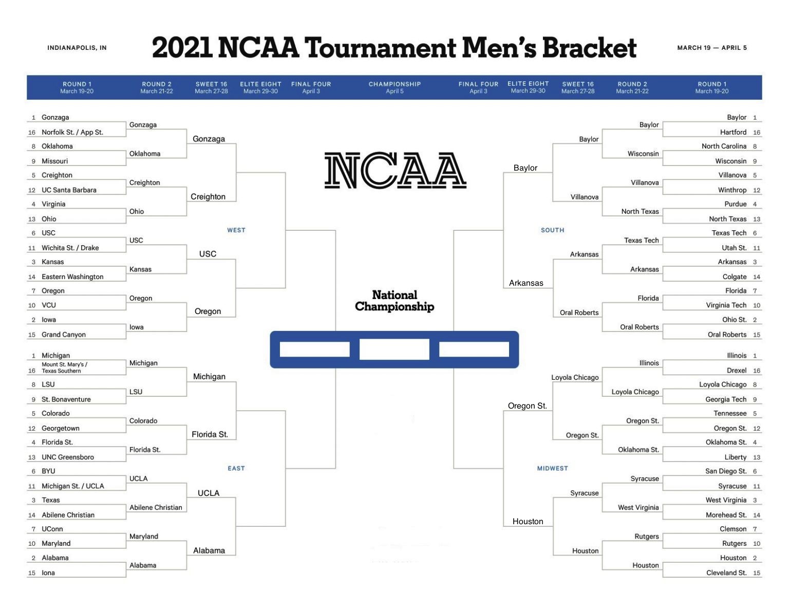 (1) Gonzaga vs. (5) Creighton