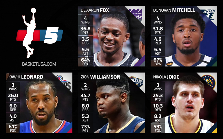 Pour une fois, le cinq majeur de la semaine a été assez facile à déterminer. Car si les candidatures de James Harden et Devin Booker étaient intéressantes sur le “backcourt”, les bilans parfaits et la folle efficacité de De’Aaron Fox (64% d’adresse) et Donovan Mitchell (67% à 3-pts) étaient impossibles à laisser de côté.