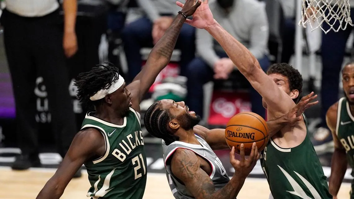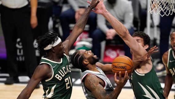 Dans le dernier quart-temps, les deux équipes se rendent d’abord coup pour coup et l’écart ne redescend pas. Puis autour de Kawhi Leonard, les seconds couteaux des Clippers se mettent au diapason et accélèrent, à l’image des innombrables réussites à 3-points de Luke Kennard. Les paniers dans la raquette de Giannis Antetokounmpo ne permettent toujours pas aux Bucks de se relancer (117-100).