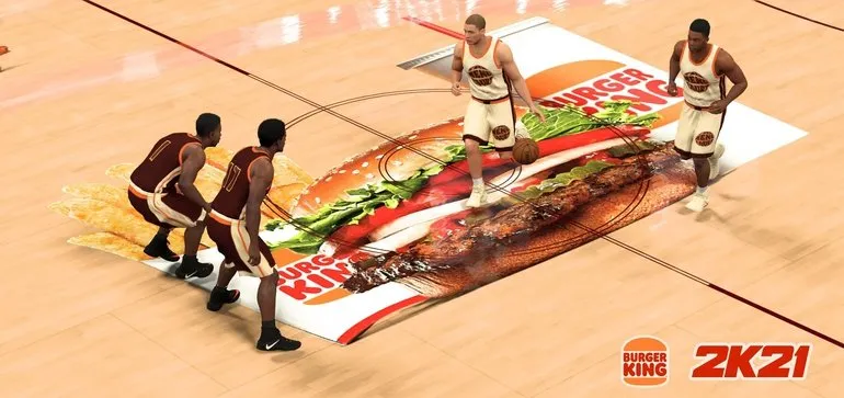 En partenariat avec NBA 2K, la chaîne de restauration rapide a ainsi concocté un parquet à télécharger dans le mode « MyLeague », intitulé « BK_TheMenuCourt », sur lequel différents mets sont représentés. Le principe est simple : si vous scorez depuis un marqueur représentant une portion de frites, de Nuggets ou un burger, partagez votre panier sur Twitter avec le #BKMenuCourt, et vous aurez ainsi le droit de récupérer le prix en question pour le déguster en vrai ! À noter que pour obtenir un repas complet avec des frites et un soda, il faut réussir un tir du milieu du terrain. Il fallait y penser !