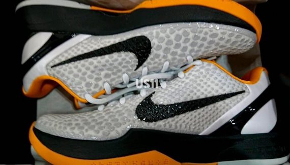 S’inspirant du modèle « Del Sol » sorti en 2011, une nouvelle Nike Kobe 6 Protro serait dans les cartons pour les Playoffs. Dévoilée par US_11, la « Nike Kobe 6 Protro POP » (pour Playoff Pack) disposera des nouvelles technologies actuelles qui rendront la chaussure bien plus légère que la version originale, avec des coloris noir, blanc, orange et des écailles grises sur l’empeigne et le devant de la chaussure que le « Black Mamba » n’aurait pas renié.