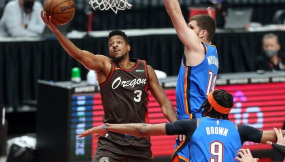 Aleksej Pokusevski et Kenrich Williams sont pourtant intéressants, ce dernier ramenant même le Thunder à -9 (45-36). Mais Carmelo Anthony veille au grain et plante deux paniers à 3-points à son tour avant de laisser le soin à la paire Lillard-McCollum de conclure la mi-temps afin de redonner 19 points d’avance aux locaux suite à un ultime 2+1 de Damian Lillard devant Théo Maledon (65-46).