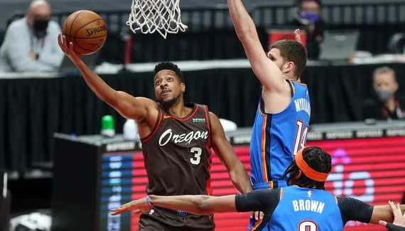 Aleksej Pokusevski et Kenrich Williams sont pourtant intéressants, ce dernier ramenant même le Thunder à -9 (45-36). Mais Carmelo Anthony veille au grain et plante deux paniers à 3-points à son tour avant de laisser le soin à la paire Lillard-McCollum de conclure la mi-temps afin de redonner 19 points d'avance aux locaux suite à un ultime 2+1 de Damian Lillard devant Théo Maledon (65-46).