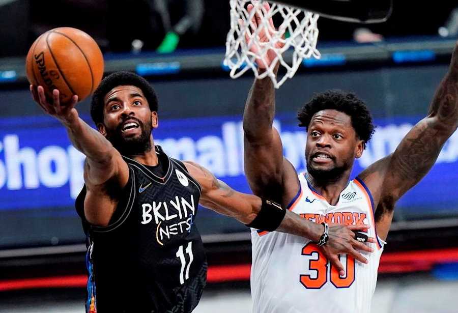 Le derby de la Grosse Pomme démarre sur un rythme lent, mais avec déjà beaucoup de contacts et d’agressivité. Kyrie Irving met déjà Elfrid Payton au supplice, tandis que James Harden touché à la cuisse, sort tout de suite du parquet. On ne le reverra pas… Pas de problème pour “Uncle Drew” qui poursuit son clinic particulier (14 points déjà).