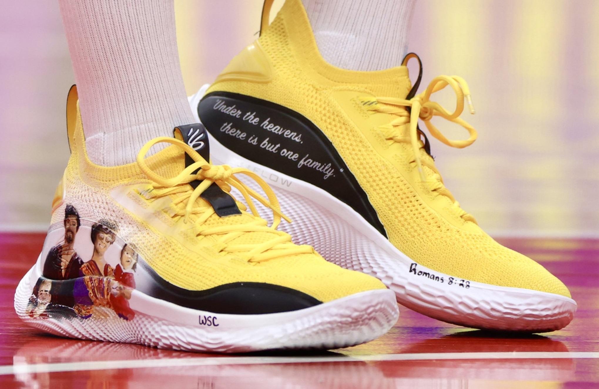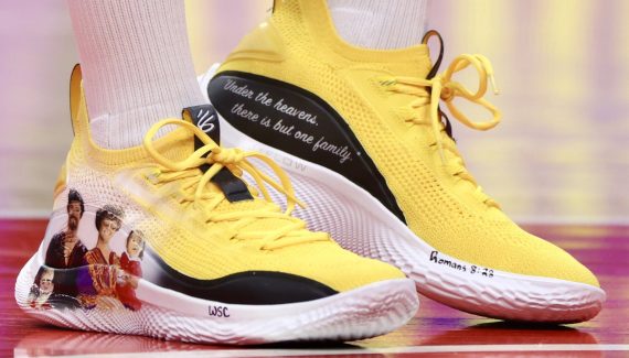 Customisée par Kreative Custom Kicks, la paire d’Under Armour « Curry Flow 8 » portée par Stephen Curry lors de son dernier match à Atlanta a fait le tour du Web. Le double MVP l’a ainsi utilisée pour soutenir la communauté asiatique, stigmatisée depuis le début de la pandémie de Covid-19 et meurtrie suite aux tueries d’Atlanta.
