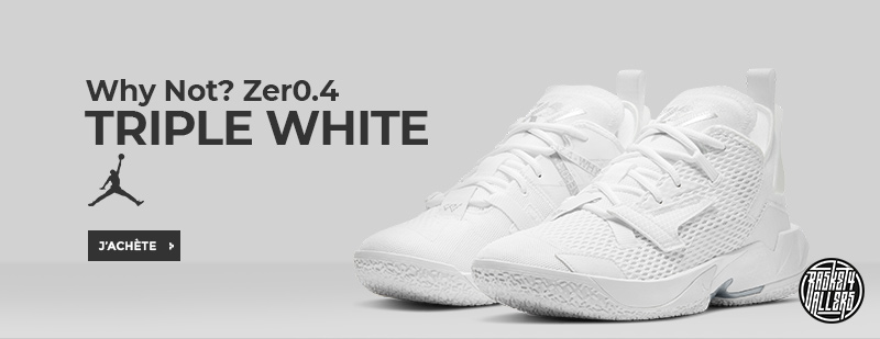 Procurez-vous maintenant sur Basket4Ballers.com les Jordan Why Not? Zer0.4 parées d’un sobre coloris “Triple White” parfaites pour permettre à Russel Westbrook d’exprimer toute sa créativité et son audace !