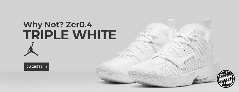 Procurez-vous maintenant sur Basket4Ballers.com les Jordan Why Not? Zer0.4 parées d'un sobre coloris “Triple White” parfaites pour permettre à Russel Westbrook d'exprimer toute sa créativité et son audace !