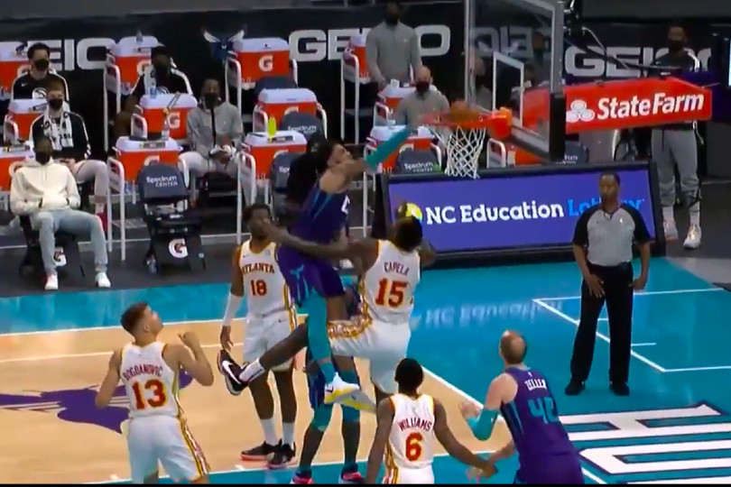 Miles Bridges est l’un des plus féroces dunkeurs de la NBA actuelle, et le joueur de Charlotte s’est sans doute offert la première place du prochain Top 10 avec un coup de marteau monumental sur Clint Capela !