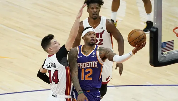 À Phoenix, c'est Deandre Ayton qui tient le baraque, mais les extérieurs ne sont pas encore dans le match, et Trevor Ariza, très en jambes, les punit par deux fois à 3-points (34-21). Heureusement, l'entrée des remplaçants casse le rythme du Heat, et Dario Saric et Jevon Carter limitent les dégâts après douze minutes (34-26).