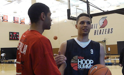 Quand on est arrivé à la salle d’entraînement, ce mardi matin, on a croisé les Blazers qui finissaient le shoot-around. Une petite séance qui leur permet de préparer le match du soir contre les Warriors. On a tout de suite vu l’impact de la NBA car il y avait au moins 6 ou 7 caméramen autour du terrain, alors que pour le Hoop Summit il n’y a pour l’instant que l’équipe de Vis Mon Match.