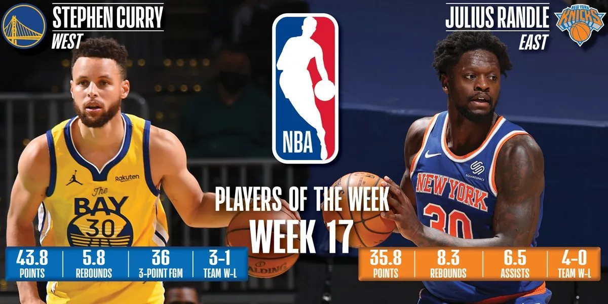 À l'Est, c'est la belle semaine de Julius Randle qui a été récompensée. À 35.8 points, 8.3 rebonds et 6.5 passes décisives en moyenne sur quatre matchs, pour quatre victoires, l'intérieur des Knicks a dominé son sujet, avec notamment une grosse prestation à Dallas, sa ville natale (44 points, 10 rebonds, 7 passes).