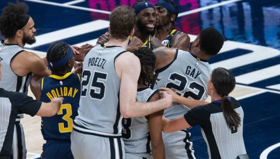 Une scène assez inhabituelle s’est déroulée au l’AT&T Center lors du match entre les Spurs et les Pacers cette nuit puisqu’une échauffourée a éclaté entre JaKarr Sampson et Patty Mills au début du quatrième quart-temps.
