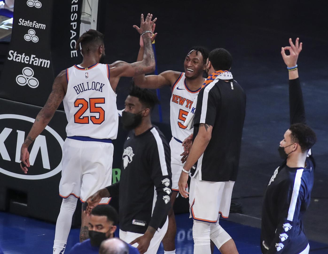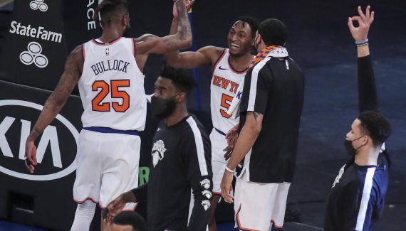 Pas de suspense dans les cinq dernières minutes puisque New York domine son sujet en entamant la période par un 10-0, entre les 3-points de la paire Randle-Bullock et le dunk de Nerlens Noël (132-122). Immanuel Quickley peut finir le job derrière l’arc et offrir ainsi aux Knicks une victoire qui fera peut-être date sur cette fin de saison (137-127). C’est la 8e de suite, et les voilà 4e à l’Est. Personne n’avait imaginé cela en début de saison !