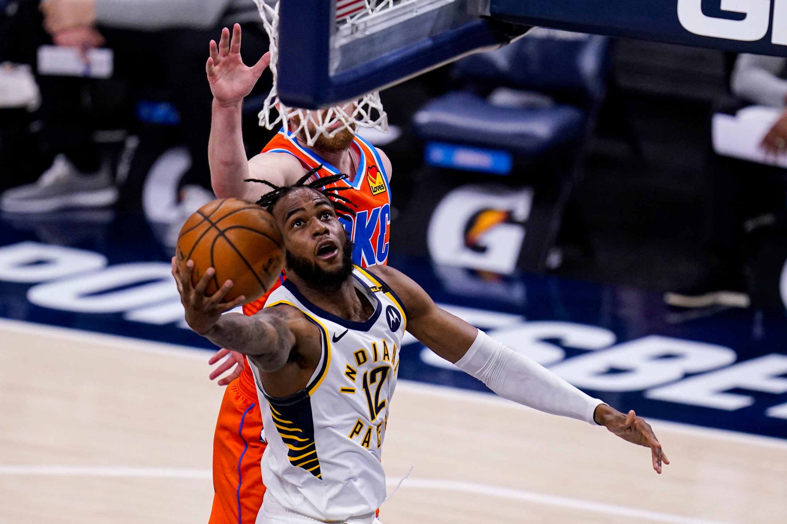 Avec leur effectif largement amoindri, les Pacers ont titularisé leur dernière recrue au poste de pivot. Un pivot de 2m01, qui a dû faire face (à l’improviste) aux 2m18 de Moses Brown, la jeune pépite du Thunder qu’Oshae Brissett connaît bien pour l’avoir affronté en G-League…