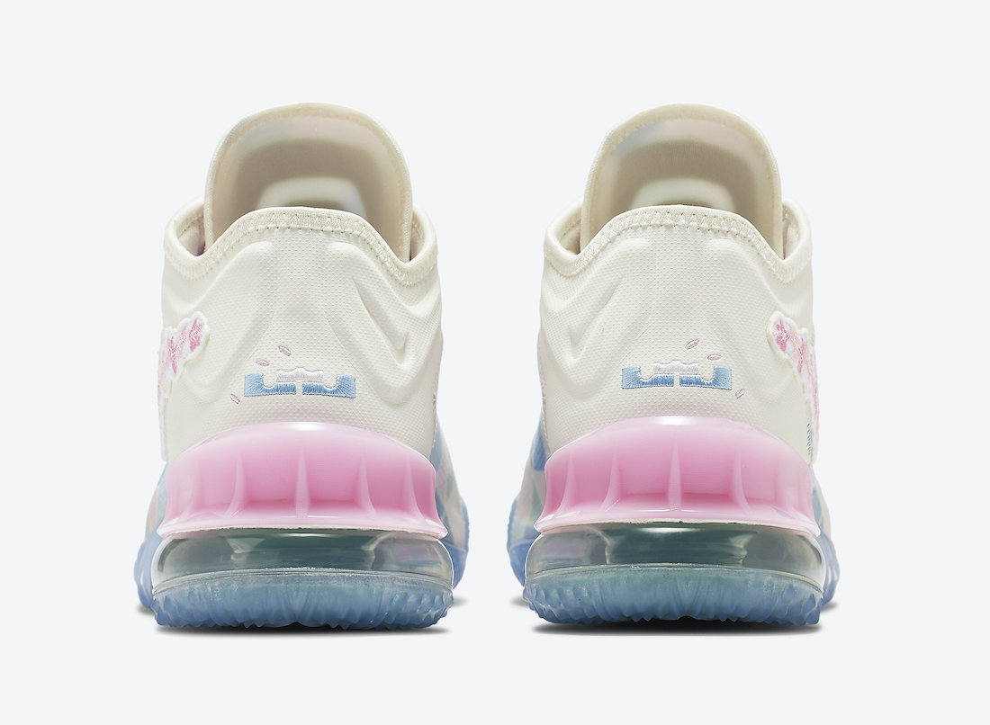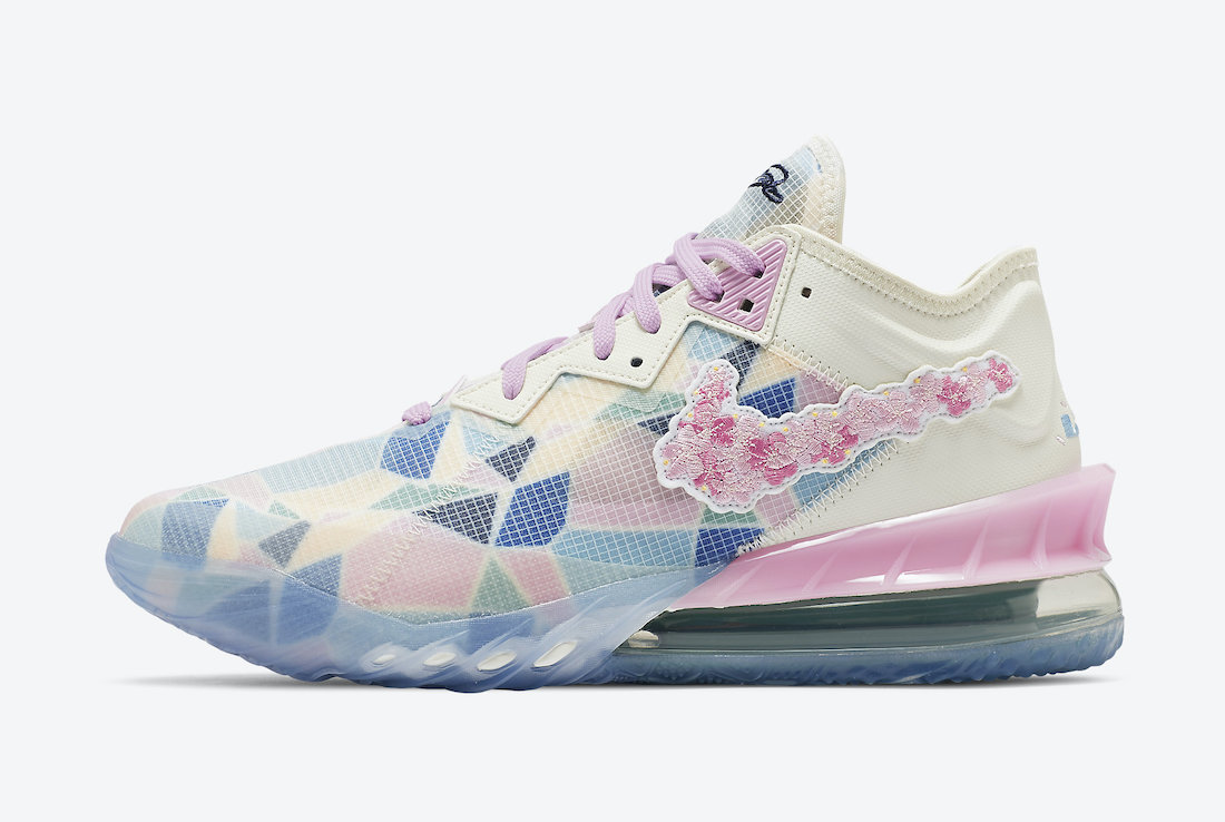 Le modèle reprend les couleurs issus des paysages « Sakura », ces cerisiers qui ornent allées, parcs et jardins. Ils occupent une grande place dans le culture japonaise, à tel point qu’un bilan sur le front de floraison des cerisiers est délivré chaque soir après le JT et la météo. Le « Sakura » est donc le symbole du printemps et la LeBron 18 espère l’être tout autant !