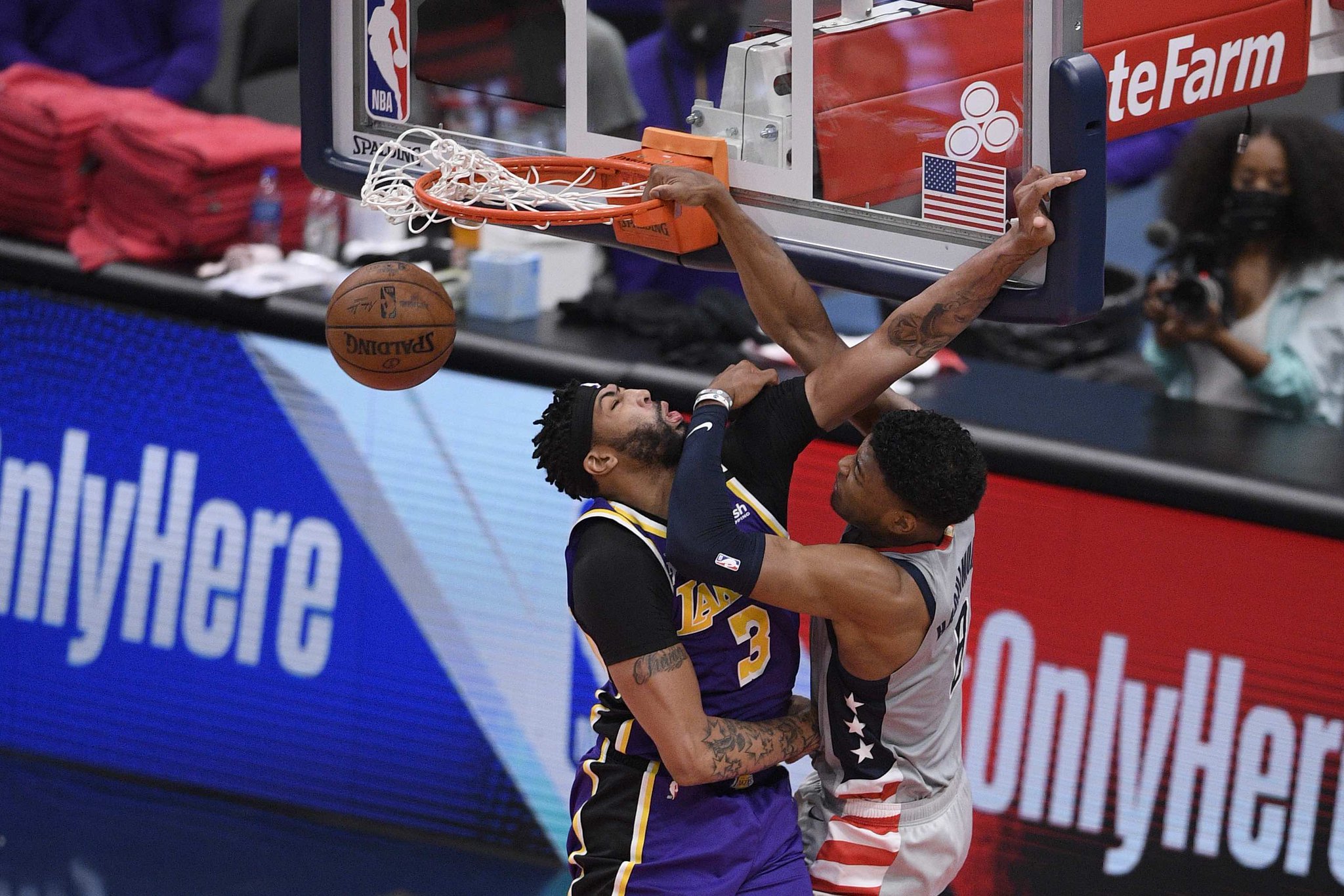 Dans le dernier quart-temps, Russell Westbrook valide tranquillement le 176e triple-double de sa carrière et le 30e de sa saison. Dans le sillage de son meneur, ainsi que celui du bondissant Daniel Gafford, Washington enfonce les Lakers dans la raquette pour rapidement virer à +20. Mais Anthony Davis se chauffe dès lors afin de progressivement ramener les siens, à l’approche du « money-time » (104-95).