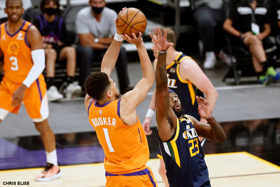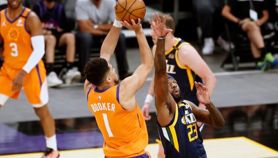 Derrière un Devin Booker agressif, Phoenix fait le break. L’arrière finit le premier quart temps avec 14 points alors que les Suns profitent de cinq balles perdues d’Utah pour mettre à mal leur défense et finir le premier quart-temps avec 16 points d’avance (39-23).