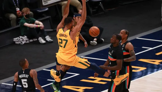 Toujours privé de Mike Conley et Donovan Mitchell, le Jazz reçoit les Spurs. À domicile, Utah prend le contrôle des opérations en début de match, à l'image d'un gros dunk à une main de Bojan Bogdanovic. Royce O'Neale intercepte un ballon et s'envole également vers le cercle.