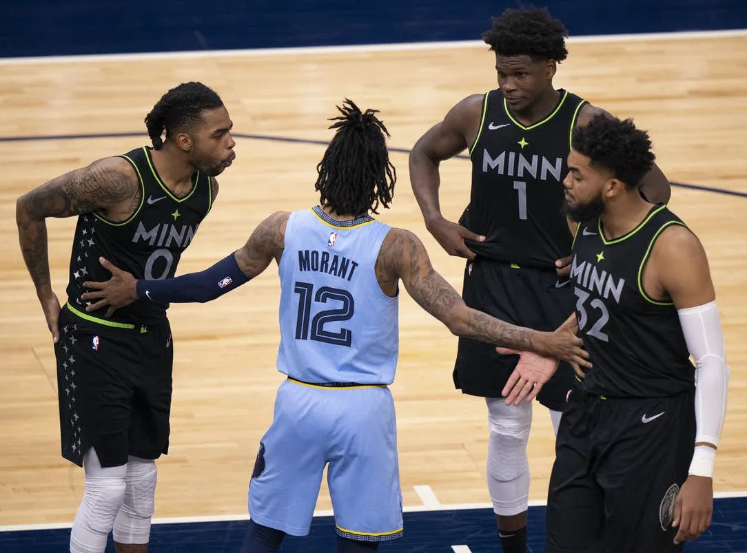 Les Wolves ne jouent pas les « sparring partners » sur cette fin de saison et Memphis s'est arraché pour repartir avec la victoire. Dans un match de fou marqué par le duel à distance entre Ja Morant (37 points) et Anthony Edwards (42 points), c'est Desmond Bane (22 points) qui a fait pencher la balance en faveur des Grizzlies en toute fin de partie.