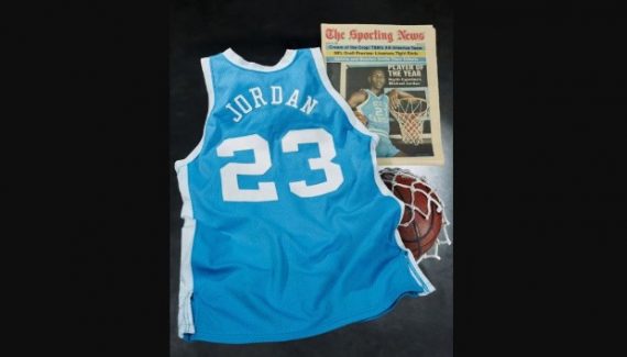Ce maillot a été porté en 1983/84, année où Michael Jordan remporte le titre de meilleur joueur de l’année remis par le magazine The Sporting News. Le propriétaire du maillot l’avait acheté 63 500 dollars en 1999, et selon ESPN, ce maillot avait été obtenu lors d’un passage des Tar Heels sur le campus de Stanford, et ce jour-là, les deux universités avaient échangés leurs maillots.