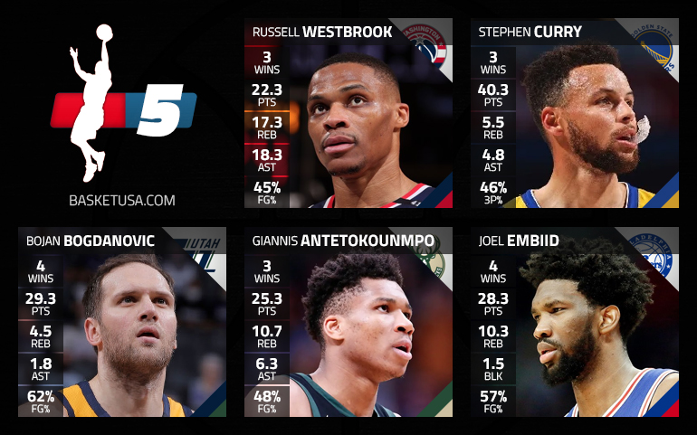S’il y avait encore pas mal de candidats pour le cinq majeur de la semaine, quelques noms se détachent. Comme Russell Westbrook, qui a égalé le total de “triple-double” d’Oscar Robertson, ou encore Stephen Curry, qui continue de dynamiter toutes les défenses pour filer vers son deuxième titre de meilleur scoreur de NBA.
