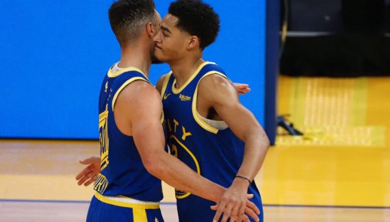 Adepte des shoots du milieu de terrain avec Stephen Curry à l’échauffement, Jordan Poole en a converti un au buzzer du troisième quart. De quoi ravir le meilleur scoreur de la NBA.