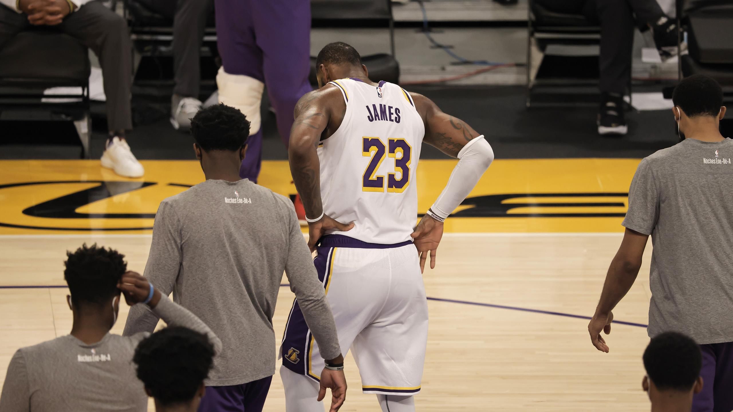 Touché à la cheville face à Atlanta, le 20 mars, LeBron James aura donc manqué 25 des 27 derniers matchs de Los Angeles depuis cette date. Et alors que son équipe était à la 2e place de l’Ouest au moment de sa blessure, juste derrière Utah, elle se retrouve désormais à la 7e place, sous la menace d’un “play-in” particulièrement dangereux.