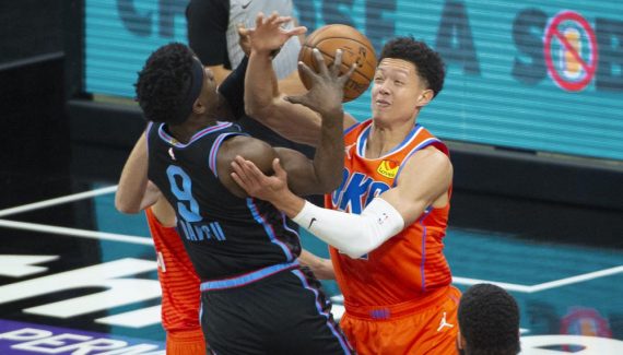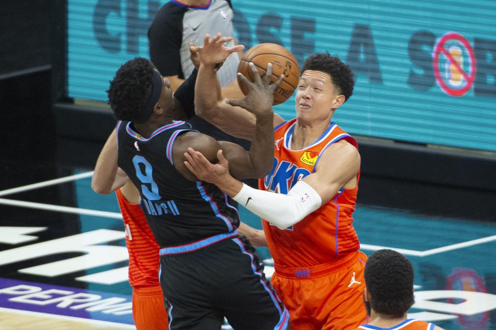 | Thunder / 106 | Tirs | Rebonds | | | Joueurs | Min | Tirs | 3pts | LF | O | D | T | Pd | Fte | Int | Bp | Ct | Pts | Eval | | D. Bazley | 35 | 3/13 | 2/7 | 10/12 | 1 | 4 | 5 | 5 | 0 | 0 | 4 | 0 | 18 | 12 | | A. Pokusevski | 32 | 4/8 | 2/4 | 0/2 | 1 | 2 | 3 | 2 | 2 | 0 | 5 | 1 | 10 | 5 | | K. Williams | 33 | 8/15 | 4/5 | 0/0 | 0 | 2 | 2 | 4 | 4 | 4 | 1 | 2 | 20 | 24 | | I. Roby | 26 | 3/8 | 0/2 | 3/4 | 0 | 7 | 7 | 2 | 5 | 1 | 1 | 1 | 9 | 13 | | M. Brown | 27 | 3/7 | 0/0 | 4/8 | 6 | 7 | 13 | 0 | 0 | 1 | 3 | 1 | 10 | 14 | | G. Deck | 19 | 4/7 | 0/0 | 0/0 | 1 | 0 | 1 | 1 | 1 | 0 | 0 | 0 | 8 | 7 | | C. Brown Jr. | 13 | 3/4 | 1/1 | 0/0 | 0 | 1 | 1 | 0 | 2 | 0 | 1 | 0 | 7 | 6 | | J. Hoard | 15 | 0/1 | 0/0 | 0/0 | 0 | 4 | 4 | 4 | 0 | 0 | 0 | 0 | 0 | 7 | | T. Bradley | 17 | 4/7 | 0/0 | 2/2 | 0 | 6 | 6 | 1 | 2 | 0 | 2 | 0 | 10 | 12 | | S. Mykhailiuk | 23 | 7/14 | 0/4 | 0/0 | 0 | 3 | 3 | 3 | 2 | 3 | 1 | 0 | 14 | 15 | | Total | | 39/84 | 9/23 | 19/28 | 9 | 36 | 45 | 22 | 18 | 9 | 18 | 5 | 106 | | |