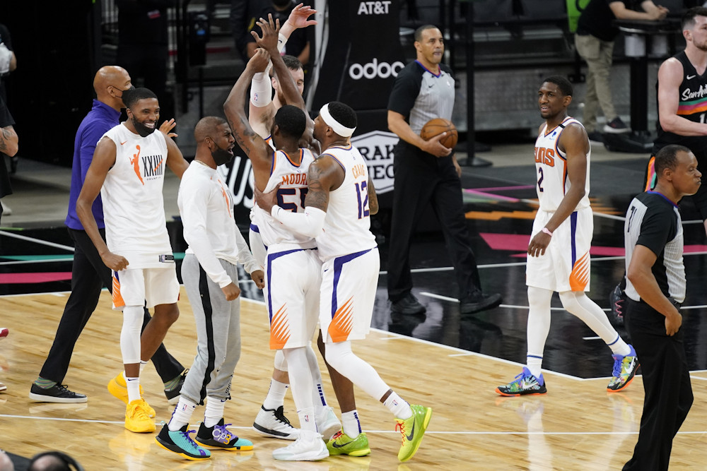D’un côté, des Spurs qui sont assurés de terminer 10e, et de l’autre, des Suns qui rêvent toujours d’arracher la 1ere place au Jazz. Sans Devin Booker, ni Chris Paul, Phoenix fait le yo-yo pendant les trois quarts du match, mais grâce aux dunks du rookie Jalen Smith et à l’adresse d’E’Twaun Moore, ils abordent le “money time” avec 10 points d’avance (111-101). On pense que c’est plié, d’autant que les Spurs ont envoyé les joueurs du bout du banc.