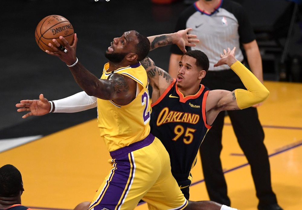 Dans le dernier acte, un « alley-oop » entre LeBron James et Anthony Davis, puis trois paniers supplémentaires du « King » et de Kyle Kuzma, offrent les commandes aux Lakers pour la première fois du match ! Sans Stephen Curry, les Warriors craquent et le momentum a clairement changé de camp avec ce 8-0, lancé par un LeBron James en triple-double (85-79).