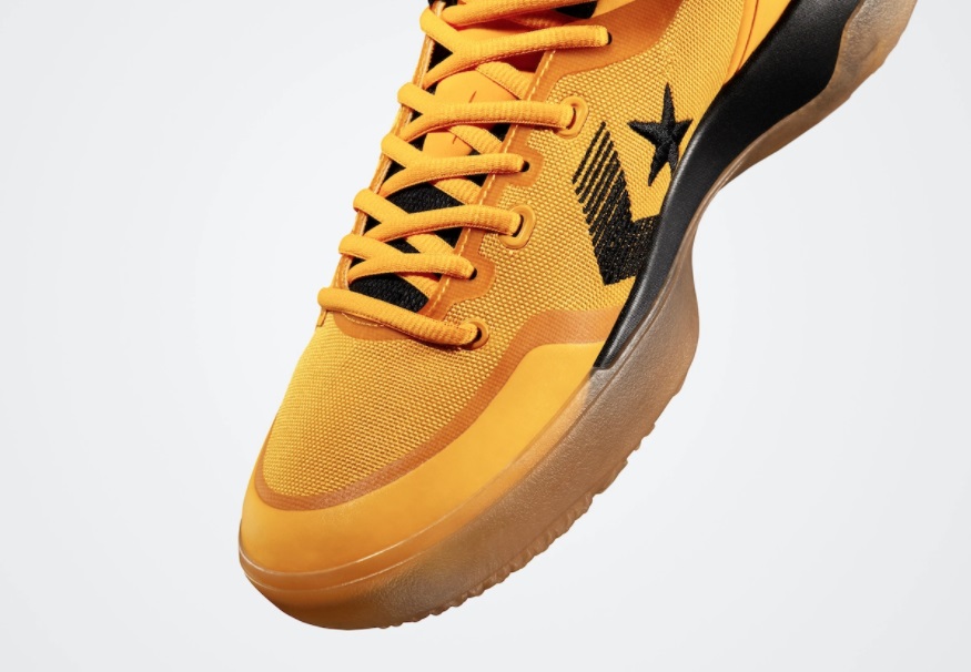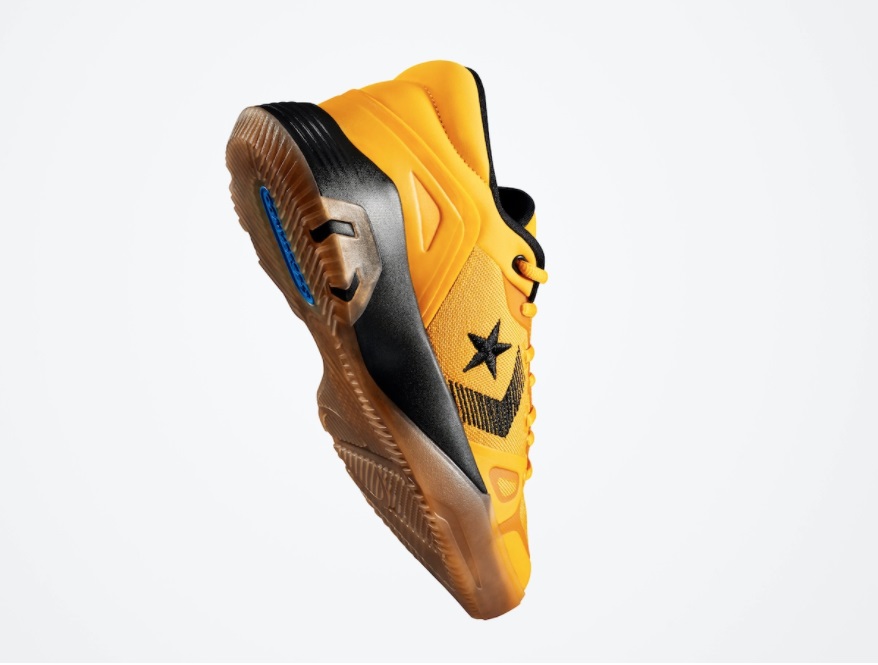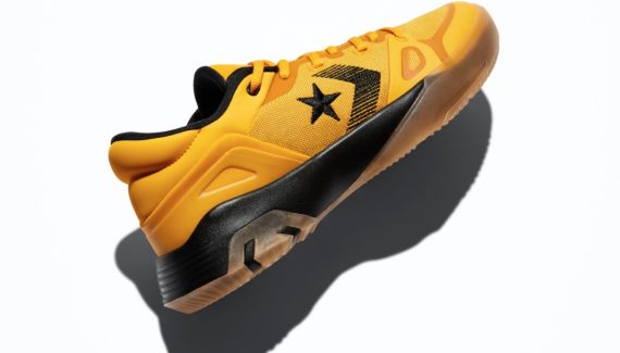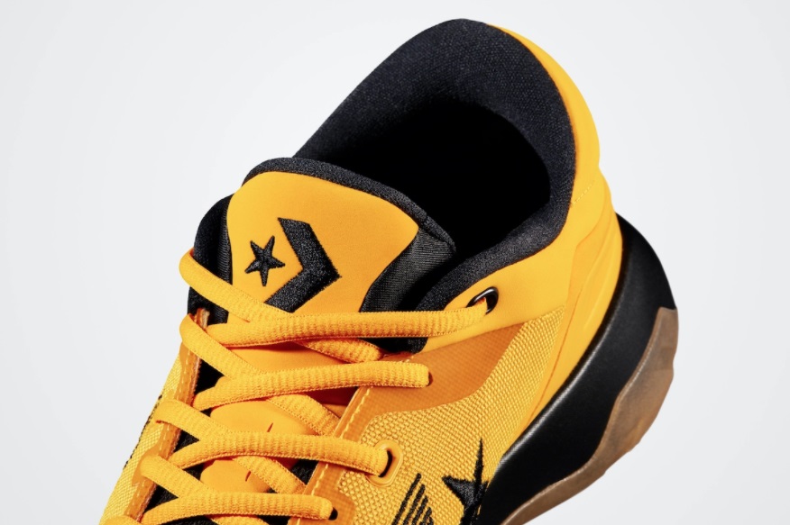 Converse sort le grand jeu pour l’un de ses plus glorieux représentants avec une « Player Edition » de choix de la G4. La « Hyper Swarm » propose un modèle jaune-orangé sur lequel le logo de la marque et l’étoile ressortent en noir, le tout sur une semelle noire et dorée.