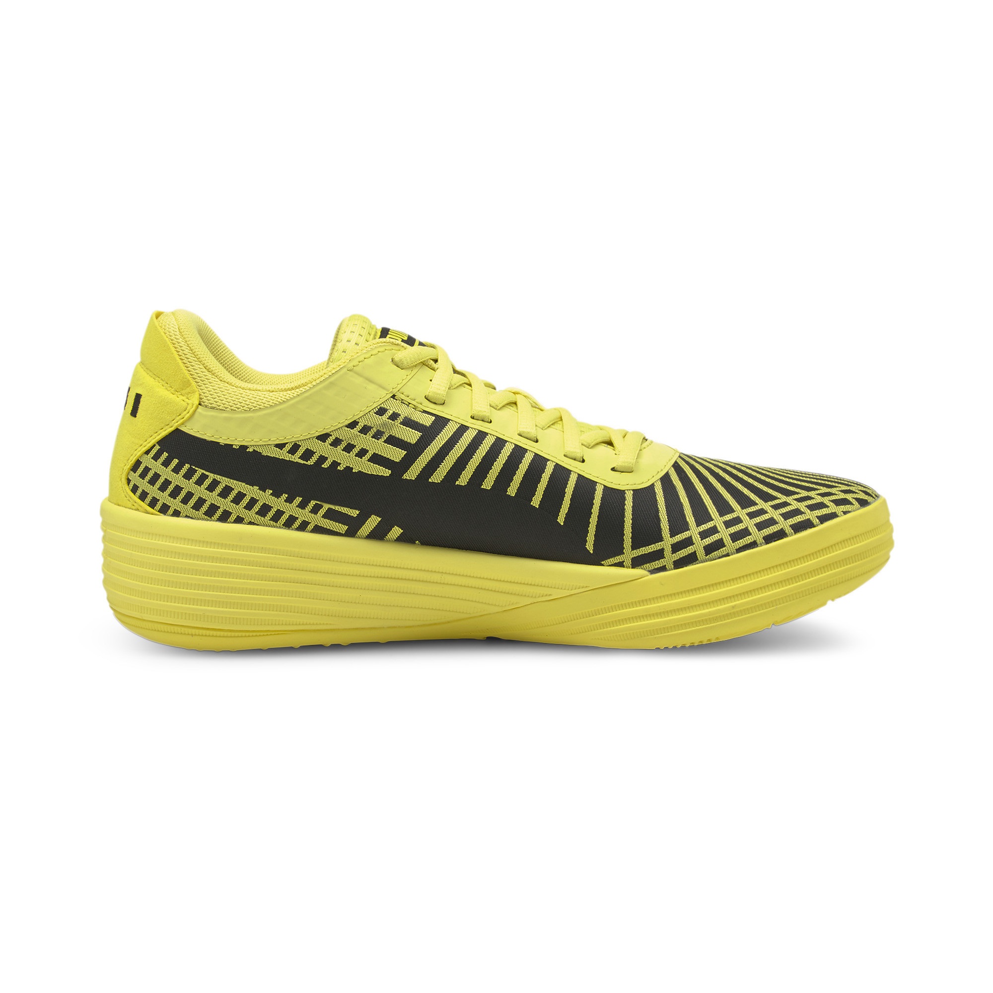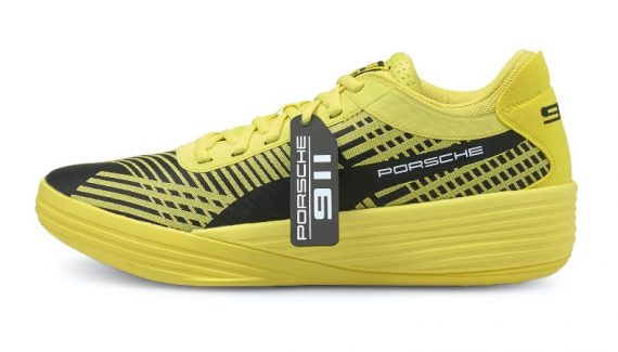Puma a envoyé la gomme pour la nouvelle version de sa « Clyde All Pro » en dévoilant une collaboration avec Porsche ! Les deux marques allemandes ont uni leur savoir-faire pour sortir une paire censée refléter une sensation de vitesse, avec une tige jaune néon brillante, couleur qui compose les mêmes bandes sur la chaussure, sur un fond noir.
