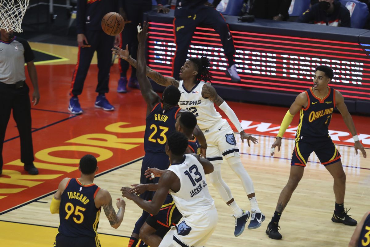 Les Warriors usent et abusent des tirs de loin, sans trop de réussite, et Steve Kerr demande à ses joueurs de jouer plus près du cercle. Morant prend le jeu à son compte, et son duel face à Curry est de haut vol. Golden State manque de variété dans son jeu offensif, et Memphis, mené par un Kyle Anderson en leader défensif, coupe quasiment toutes les lignes de passes adverses. À trois minutes de la fin, les Grizzlies mènent de neuf points…