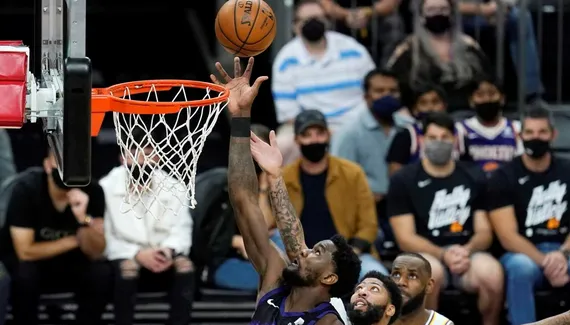 Et pourtant, Deandre Ayton s'en est sorti comme un chef, livrant carrément l'un de ses meilleurs matches de la saison avec 21 points, 16 rebonds et surtout un impressionnant 10 sur 11 aux tirs. On retiendra sa présence au rebond offensif, notamment en fin de match pour mettre le couvercle, ou redonner des secondes chances. Autour de lui, deux ou trois Lakers, mais ses longs bras et son placement font la différence.